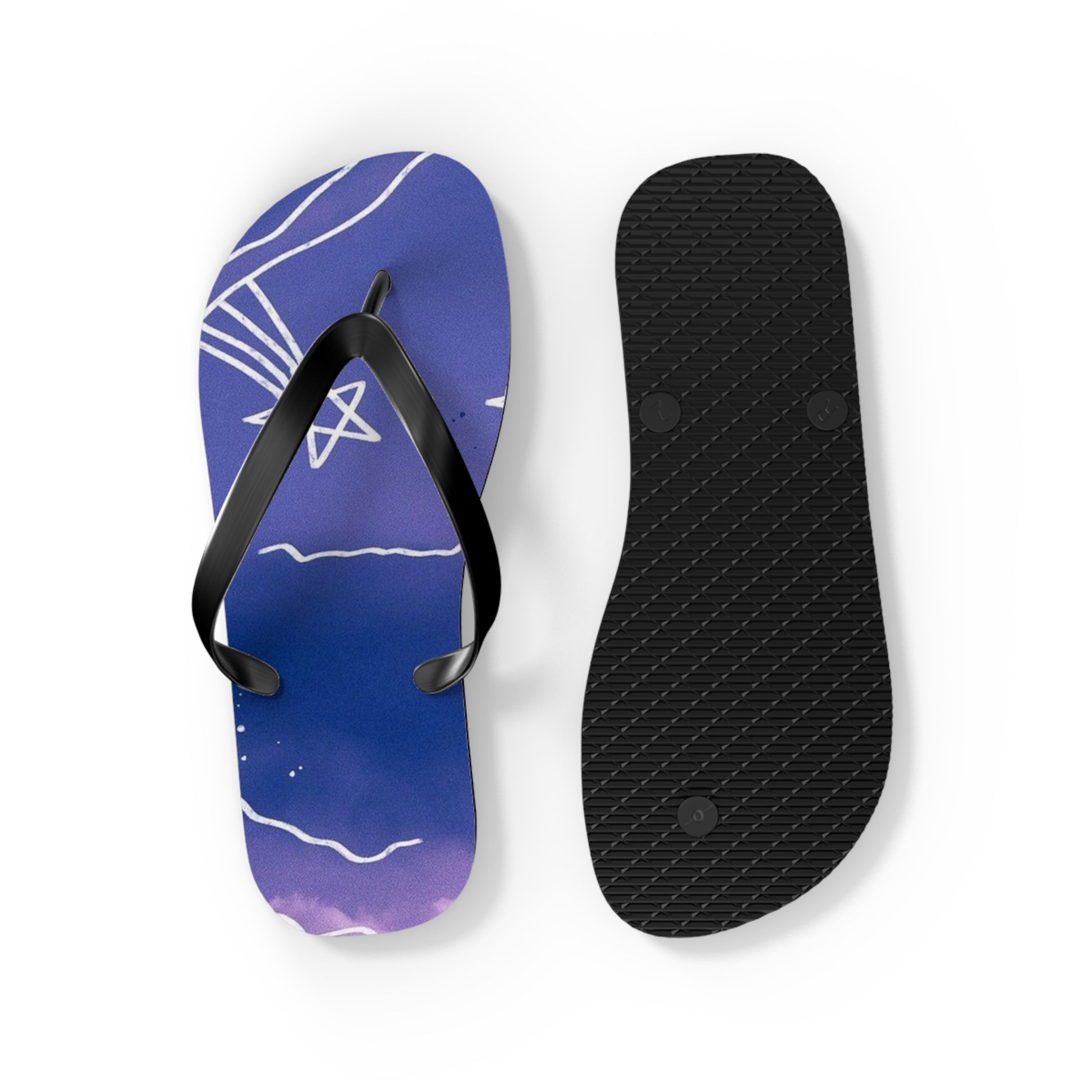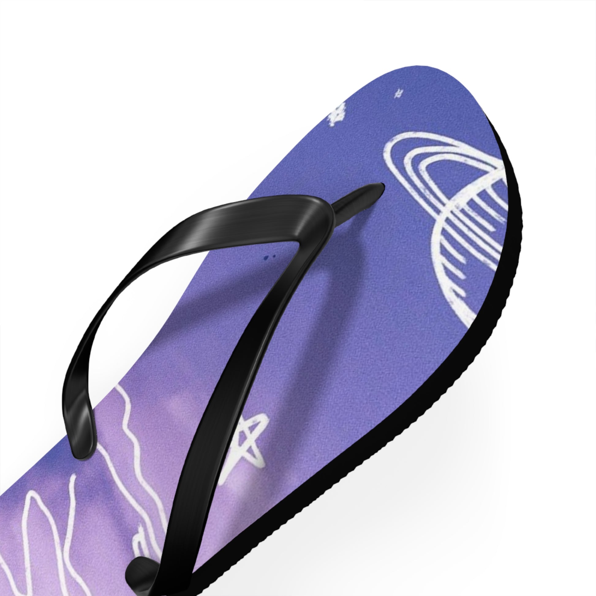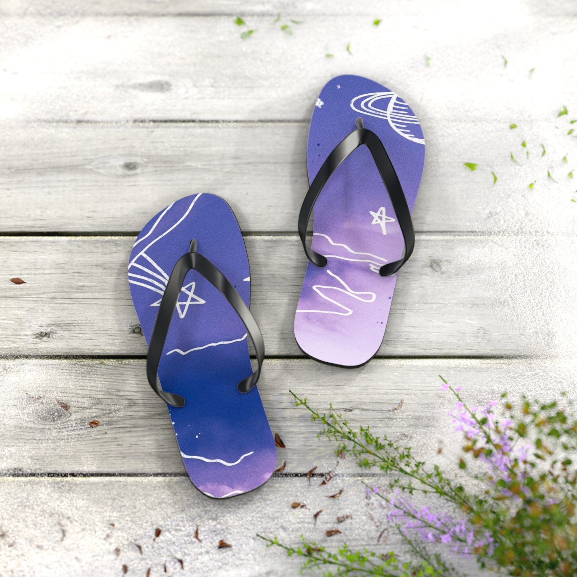Celestial Doodle Flip Flops — Purple Star & Planet Beach Sandals